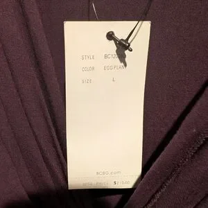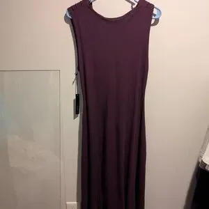 NWT BCBG Max Azria dress in a deep purple. Sleeveless, knot detail on front. Size large, fits a 12/14 well. Shoulder to hem approx 43". Non smoking home.