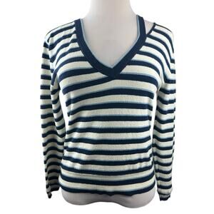 *Damaged* Veronica Beard Herbie Slit Neck Striped V-Neck Sweater Medium Flawed*