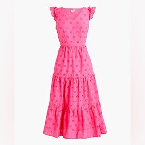 J.Crew Factory Cotton Eyelet Midi Dress In Tropical Azalea Pink Size 8