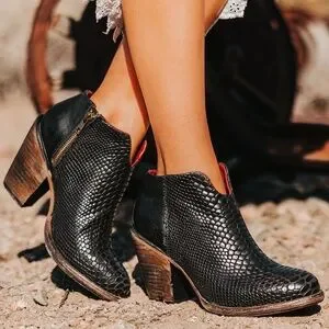 🚫SOLD! |•FREEBIRD🦅BY STEVEN•| GORGEOUS DETROIT Black Snake Booties Size 10