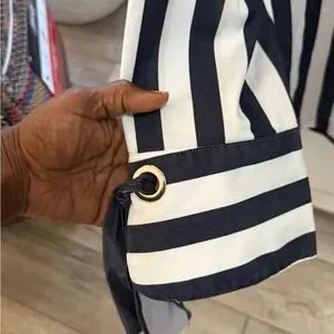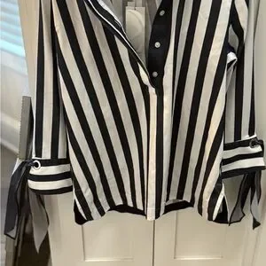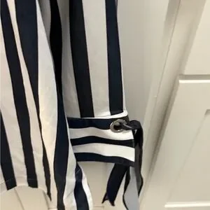 Chico's Blue and White Button Down Shirt with Cuffed Sleeves- Brand New