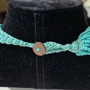 Beautiful Turquoise multi-strand (30) beaded necklace. Abalone Button loop closure. A stunner for a sexy tropical strapless dress! No flaws. New.