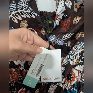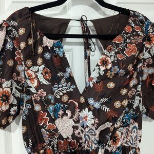NWT Sugarlips Brown Journee Floral Morty Puff Sleeve Maxi Dress in Size L (12)