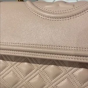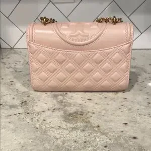 Tory Burch Pink Polished Grain Quilted Small Fleming Crossbody Bag