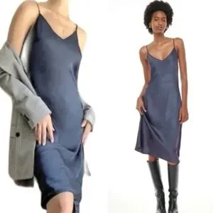 The only slip satin midi dress "granite blue"
