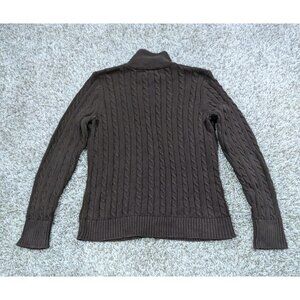 Lauren Ralph Lauren Cable Knit Sweater Women's Large Brown Crest Full Zip Up