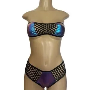 Iridescent Bikini Set with Mesh Detail exotic Dancewear rave edc