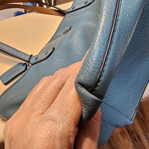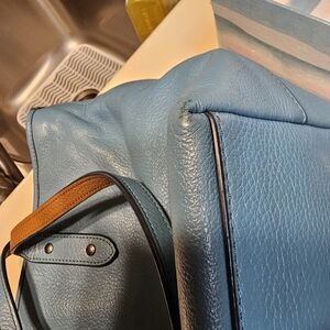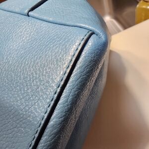 Excellent pre owned condition, smoke free,pet friendly home. Teal in color, pebbled leather, dark chrome hardware..from the Snoopy X collection. inside zipper pocket with 2 slip pockets! Great summer bag or perfect for that Snoopy collector. no rips or stains,see pics as biggest part of description