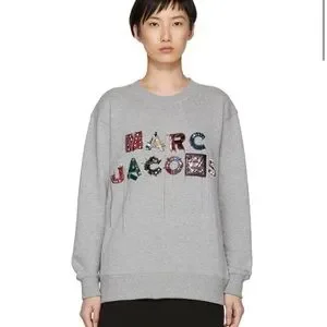 Experience the perfect blend of style and comfort with this Marc Jacobs gray crewneck sweater. Featuring a striking graphic design across the chest, this sweater is crafted from a soft cotton blend for a relaxed fit. Ideal for casual outings, it boasts ribbed cuffs and a classic silhouette.