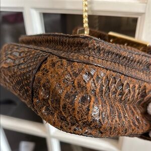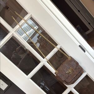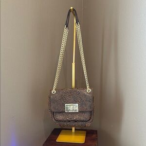 MICHAEL KORS Brown Python Snakeskin & Gold Chain Crossbody Shoulder Bag