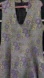 Belle badgley Mischka Elegant sleeveless dress with a floral pattern. Features purple flowers on a gray background.