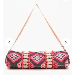 Boho Yoga Mat Bag, Pink and Black Geometric Shoulder Bag with Strap
