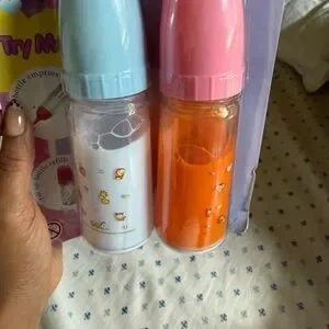 These vibrant pink and blue bottles are perfect for enhancing imaginative play with dolls. Watch as the liquid inside magically disappears, adding a touch of wonder to every playtime. Crafted for fun and creativity, these accessories are a delightful addition to any doll collection. Tilt up and see the milk and juice disappear. Brand new, outer packaging is slightly worn out, but is still brand new.
