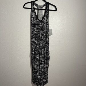Athleta Space Dye Racerback Ruched Tank Dress S Black Grey NWT