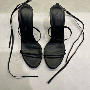 Step out in style with these elegant black strappy heels. Perfect for any occasion, these shoes offer both comfort and sophistication.