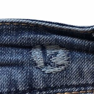 Tell Me Something Pretty released hem high waist Y2K jeans with embroidered patches are in excellent, gently used condition. No flaws.