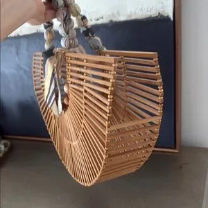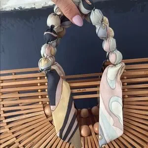 Elegant bamboo bag with a stylish multicolor scarf. Perfect for any occasion. Worn once. Perfect for summer. 17.5x10.