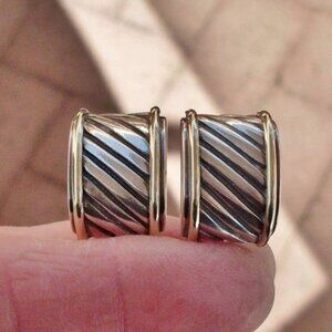 Retired David Yurman Cigar Band Earrings - 14K/925 - Omega Backs - 14K Posts