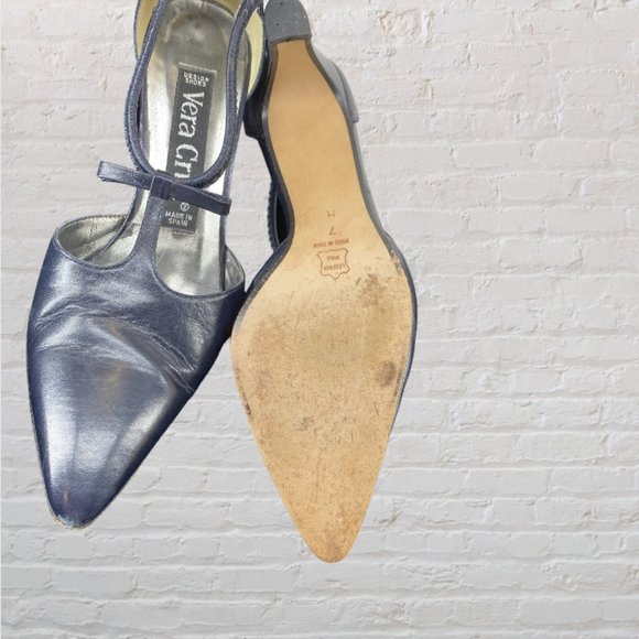For the girl who wants to look great in the office, these fabulous vintage shoes from Vera Cruz of Spain will become your go-to's! The all-leather strappy slip-ons effortlessly combine corporate seriousness with a delightful dash of fun and whimsy brought by the charming bow detail. These shoes are perfect for adding a touch of personality to any outfit--a woman's business suit or a more relaxed look for a casual office. The low heel ensures comfort without compromising on style – the perfect blend of sophistication and playfulness!