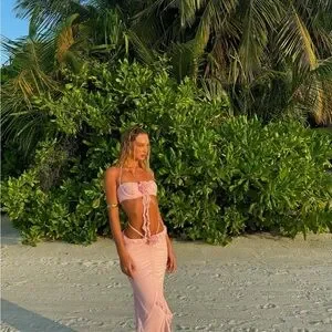 Stylish pink dress with cut-out design. Features floral accents. Perfect for summer outings.
