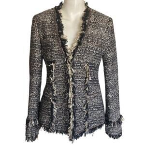 BOSTON PROPER Parisian Tweed Blazer Jacket Bronze Chain Sequins Size 6