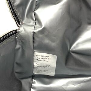 Slight scuffs in a couple areas of the outside, A few fraying threads, creasing on the back of the lunch box.