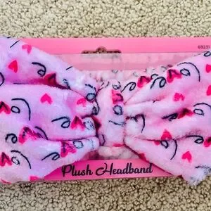 Soft and cozy pink plush headband perfect for kids. Features a cute heart design for a fun look.