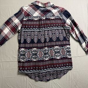 Westbound Shirt Women's Size Medium Blue Red Boho Button Up Long Sleeve Roll Tab