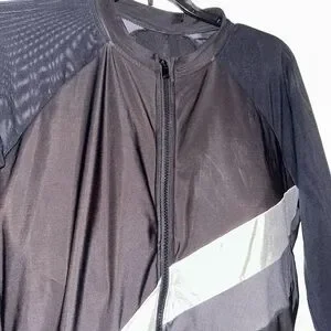 Long sleeve zip-up bathing suit. Features mesh sleeves and a high neck line. Super flattering while being modest. Only worn once and in great condition