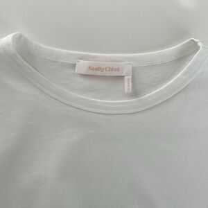 See By Chloe Lace Sleeve White Tee Shirt Top Womens Size Large Long Sleeve