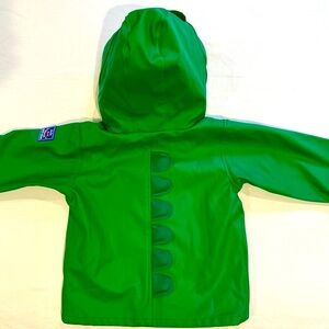 New JoJo Maman Bebe Dinosaur Raincoat Boys 2T 3T Waterproof Hooded Jacket Green