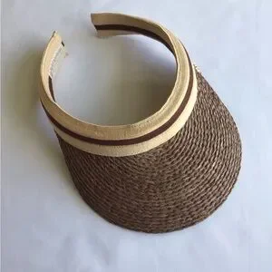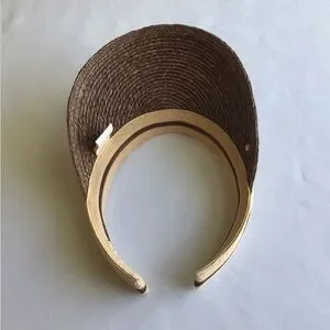 This elegant sun visor by Helen Kaminski features a beautifully woven brown and tan design, perfect for adding a touch of sophistication to your outdoor attire. Crafted with a comfortable fit, it offers both style and sun protection for leisurely days in the sun. Like new
