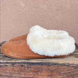 Tory Burch Cozy Tan Suede Slippers with Cream Fur Lining