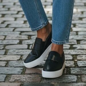 New black onyx Joy slip on quilted loafer sneaker with bow tie