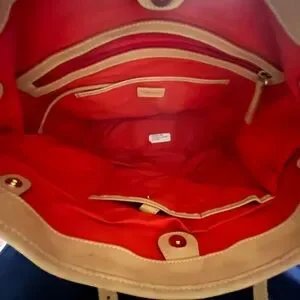 Lined with Dooney’s signature bright red interior, this roomy tote is both stylish and practical.