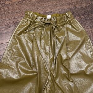 High waisted patent leather tie pants. Olive green and fleece lined pants. Lightly worn in perfect condition.