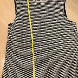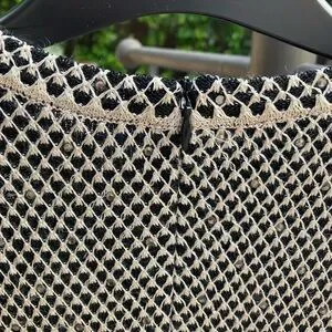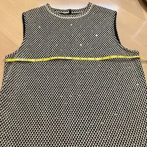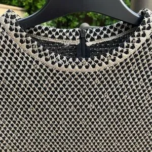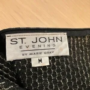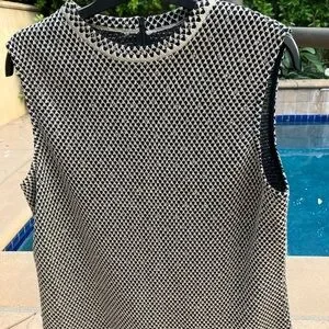 Striking black and gold rhinestone Saint John evening sleeveless top. Size medium. Zip back. Stunning with black or gold slacks. Or with jeans for a night out at the clubs. Material tags missing. Measurements in pictures.