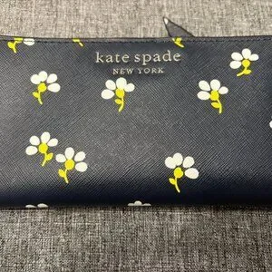 Brand New Kate Spade Wallet with super cute flowers. Snap closure, and zipper pocket for change on the back side. Lots of room for all your cards!