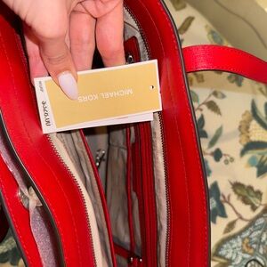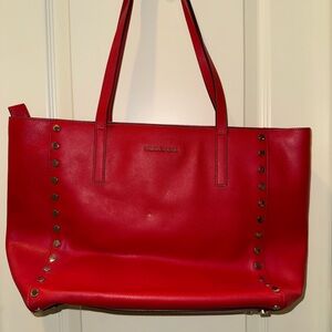 Stylish and spacious red tote bag with studded accents. Perfect for everyday use.