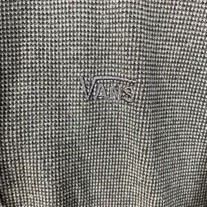 Vans gray and black jacket/hoodie with pockets and drawstrings! It does have some discoloration on the cuffs of the sleeves, otherwise in good condition with a fully functional zipper. Size small men’s!