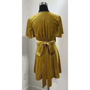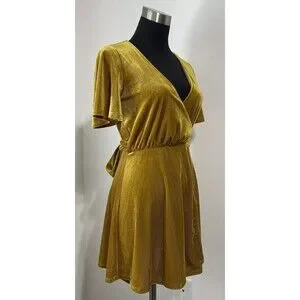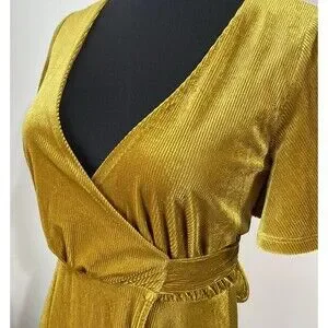 Lovers And Friends Wrap Dress Women's XS X-Small 0 2 Gold Belted Tie Velvet Corduroy Ribbed Revolve Brand Sexy Fairy Core Fairycore Party Birthday Cocktail Date Night Girly Dance HOCO Homecoming Bachelorette Wedding Baby Shower Guest Bohemian Club Beachy Resort Cute Hot Spring Summer Festival Graduation Ceremony Graduate Sorority Girl Pledge Initiation. New with tags! Please see all pictures. 90% polyester and 10% elastane.