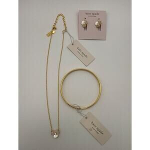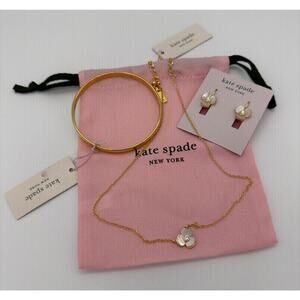 Kate Spade New York 3 Pc BUNDLE Disco Pansy Earrings/Necklace ❤️ of Gold Bangle!