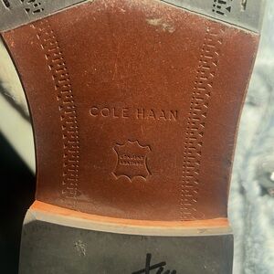 These Cole Haan chukka boots in black are crafted from smooth, polished leather, offering a refined look. The traditional lace-up design and contrasting brown sole add a touch of sophistication, making them ideal for both casual and business casual settings. With a minimalist design and rounded toe, these boots provide timeless versatility.