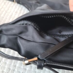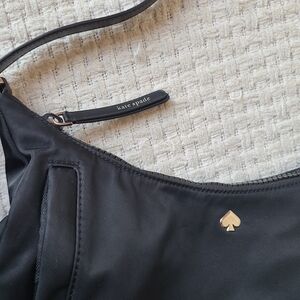 Kate Spade New York Black Women's handbag. Preowned. Minor wear. Elegant black women's bag, perfect for any occasion. MATERIAL: nylon. smooth leather trim. Beveled spade logo.