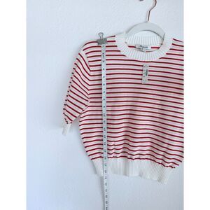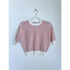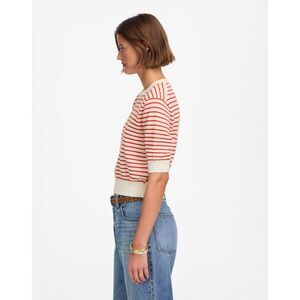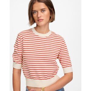 NWT Madewell Women's Textural-Stitch Cotton Sweater in Bright Flame Stripe Sz XS
