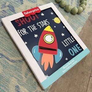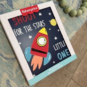 New Fisher-Price Space Explorer Rocket Wall Art Wood Boy’s Room Baby Nursery