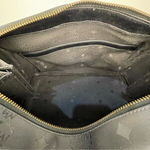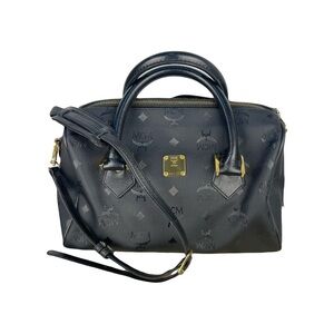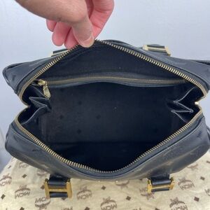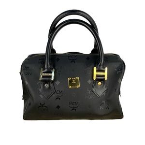 This MCM satchel in black exudes sophistication with its structured design and luxurious leather finish. The gold-tone hardware adds a touch of elegance, making it a timeless accessory for any formal occasion.