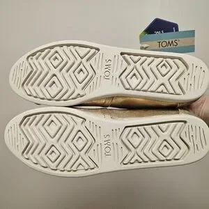 Stylish TOMS Alpargata shoes in a beautiful champagne shimmer. Perfect for any occasion.