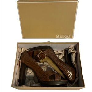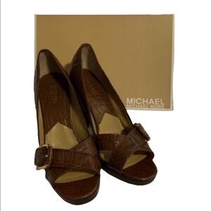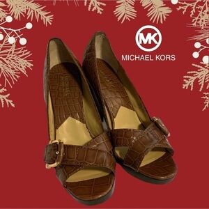 Michael Kors (EUC) Milan Crocco ALL LEATHER Peep Toe pump size 10