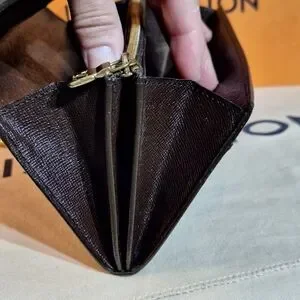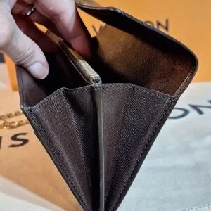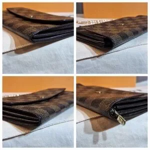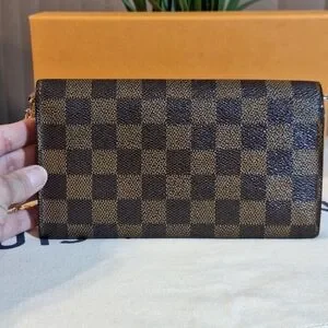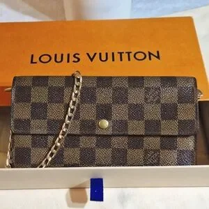 Experience timeless elegance with the Louis Vuitton Brown Damier Wallet, featuring the iconic checkered pattern, add a chain strap (not included) for a chic crossbody or shoulder look.
